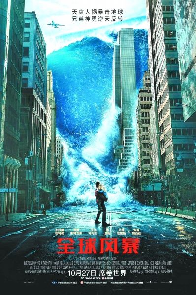 人民網北京11月3日電 由華納兄弟影片公公司出品的年度災難大片《全球風暴》正在內地火爆熱映。影片首周末三天2.25億元。《全球風暴》不僅不惜工本打造震撼的全門類災難場面,更加入懸疑、動作、科幻元素,一部電影有四部電影容量,“加量不加價”。