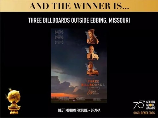《三塊廣告牌》成為電影類獎項(xiàng)最大熱門,奪得包括劇情類最佳電影在內(nèi)的四項(xiàng)大獎。弗朗西斯·麥克道曼奪得劇情類最佳女主角,加里·奧德曼憑借《至暗時刻》中深入人心的丘吉爾形象獲得劇情類最佳男主角;吉爾莫憑借今年威尼斯電影節(jié)大熱電影《水之形》獲得最佳導(dǎo)演獎;在國內(nèi)票房和口碑雙豐收的《尋夢環(huán)游記》毋庸置疑地奪得了最佳動畫獎;德國電影《憑空而來》獲得最佳外語片獎。