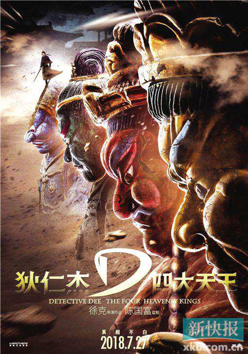 由徐克導演,趙又廷、馮紹峰、林更新、馬思純等主演的《狄仁杰之四大天王》將于7月27日上映。影片最新海報前日曝光,巨大的四大天王雕塑和狄仁杰身影形成強烈對比,似乎暗示劇情玄機,懸疑氣質撲面而來。