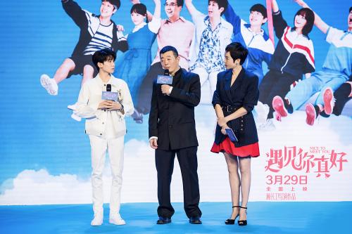青春懷舊喜劇《遇見你真好》3月26日在京召開首映發(fā)布會,本片的導(dǎo)演顧長衛(wèi)攜手主演藍盈瑩、張海宇、周楚濋、曹駿、王玉雯、蔣易以及特別出演的范明、蔣雯麗等主創(chuàng)亮相。為《遇見你真好》獻唱片尾曲的王源也參加了該片的首映禮,成為一大驚喜。而在外地拍戲的主演白客和李晨暉,也與現(xiàn)場視頻連線,與眾主創(chuàng)歡樂互動。