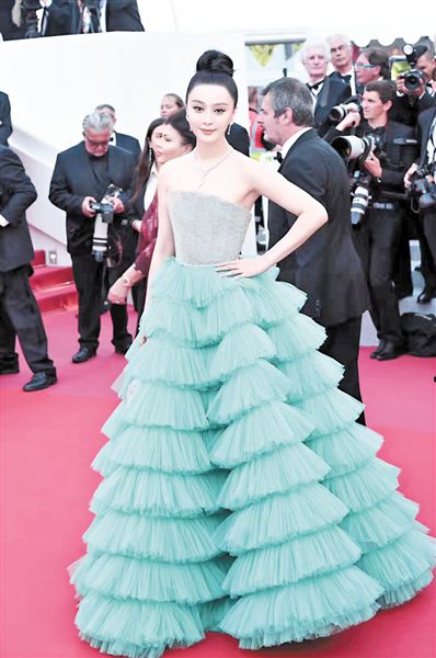相比去年開幕紅毯的低調(diào),今年范冰冰的紅毯裝束還是以造型為主。青綠色蛋糕裙的設(shè)計(jì)相當(dāng)搶眼,出現(xiàn)在紅毯時(shí),官方直播給足鏡頭,而且擁有主持人專門介紹的禮遇。