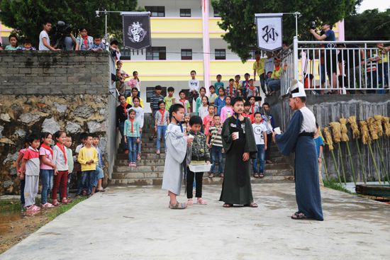 在昨晚的節(jié)目中,國家一級演員濮存昕,通過讓壩美法利小學(xué)的孩子們排演課本劇的方式,了解三國故事的歷史興衰。他借繪畫歷史人物成功吸引了孩子們的注意力,通過觀察孩子的性格在課堂上就決定了《草船借箭》的主演。但三年級的孩子毫無表演經(jīng)驗,課本劇的演出可謂是困難重重。第一重,臺詞念不準(zhǔn)。“大敵當(dāng)前”讀出得磕磕絆絆。第二重,毫無表演經(jīng)驗,孩子們在排練預(yù)演時緊張忘詞,不知道怎么演“暈”。第三重,天公不作美,在演出的那天忽然下起大雨;面對重重困難,濮老師耐心地講解臺詞,手把手教孩子演戲,告訴他們“每一分努力,就有一分收獲”,要學(xué)會相信自己的付出。在濮老師和孩子們的共同努力下,孩子們在舞臺上演得惟妙惟肖,周瑜的小肚雞腸、諸葛亮的神機(jī)妙算、曹操的灰頭土臉一一呈現(xiàn)在舞臺上,低成本完成大場面制作,獲得了鎮(zhèn)上觀眾的一致好評。