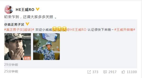 9月4日,《真正男子漢》第三季中的王威班長開通了微博,受到了網(wǎng)友們的大力歡迎。