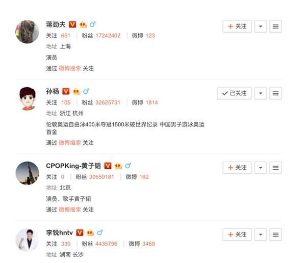 王威關(guān)注黃子韜、楊冪等明星