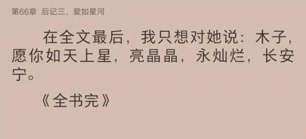 作品的最后一句話是:“在全文的最后,我只想對她說:木子,愿你如天上星,亮晶晶,永燦爛,長安寧。”據(jù)悉,9月11日,唐家三少在自己微博發(fā)文,稱自己的妻子木子因病去世。