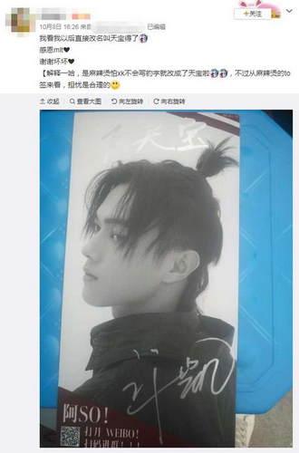 另外一名網(wǎng)友也曬出了簽名照,將自己的昵稱(chēng)“甜豹”改成了“天寶”,并表示是擔(dān)心許凱不會(huì)寫(xiě)“豹”字,特意讓他簽的天寶,現(xiàn)在看來(lái)?yè)?dān)憂是合理的。