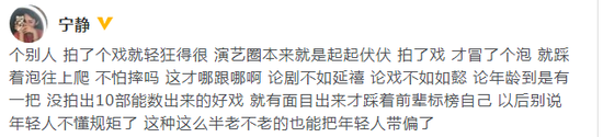 10月22日,寧靜發(fā)文怒戇耍大牌”現(xiàn)象:“個別人,拍了個戲就輕狂得很!演藝圈本來就是起起伏伏,拍了戲、才冒了個泡就踩著泡往上爬,不怕摔嗎?這才哪跟哪啊?論劇不如延禧、論戲不如如懿!論年齡到是有一把!沒拍出10部能數(shù)出來的好戲,就有面目出來才踩著前輩標榜自己!以后別說年輕人不懂規(guī)矩了,這種這么半老不老的也能把年輕人帶偏了1KHC安康新聞網(wǎng)