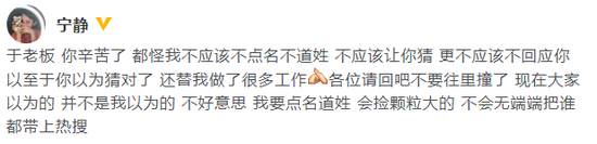 23日,寧靜在自己微博發(fā)文,回應怒懟某演員一事。她寫道:“于老板,你辛苦了!都怪我不應該不點名不道姓,不應該讓你猜、更不應該不回應你,以至于你以為猜對了,還替我做了很多工作。各位請回吧不要往里撞了,現(xiàn)在大家以為的,并不是我以為的。不好意思 ,我要點名道姓,會撿顆粒大的。不會無端端把誰都帶上熱搜!g4k安康新聞網(wǎng)