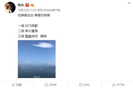 今天是節(jié)氣霜降,靳東發(fā)文引用古詩詞,然而卻把“寒窗月影新”寫成了“寒窗月新影”,引發(fā)網(wǎng)友熱議。有網(wǎng)友表示,可能是靳東在搜索“霜降”相關(guān)內(nèi)容時誤抄了錯誤的文章,結(jié)果悲劇了……不少人表示這已經(jīng)不是靳東第一次寫錯古詩詞了,也有粉絲表示沒必要揪著這點小錯不放。m6d安康新聞網(wǎng)