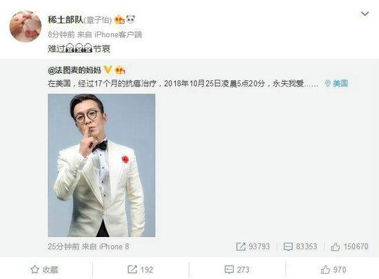 消息傳出后震驚娛樂圈,汪小菲發(fā)文悼念稱:“愿逝者安息,一路走好”,章子怡也發(fā)文稱:“難過,節(jié)哀!jDR安康新聞網(wǎng)