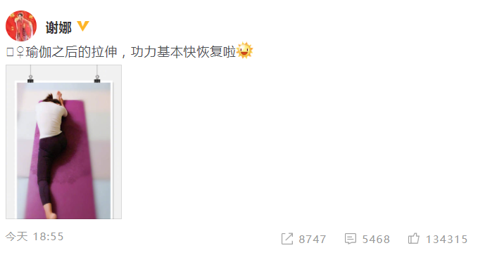11月4日,謝娜在自己微博曬出一張鍛煉的照片,并配文稱:“瑜伽之后的拉伸,功力基本快恢復(fù)啦1照片中的她身穿運(yùn)動(dòng)服,在瑜伽墊上進(jìn)行拉伸。她劈叉壓腿,看起來十分專業(yè)。nRt安康新聞網(wǎng)