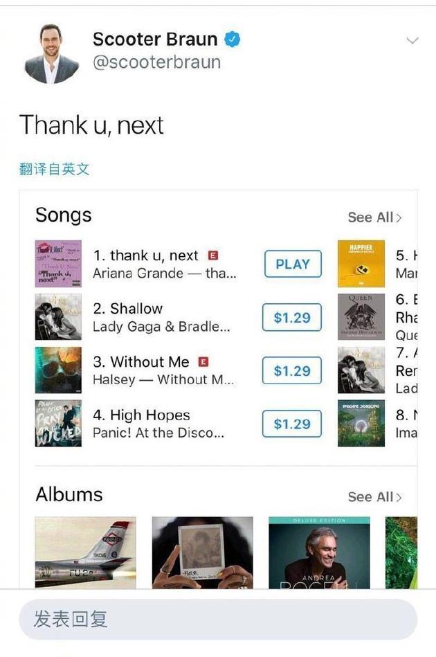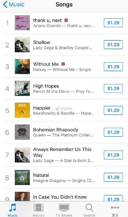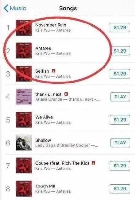 然而到了7日,吳亦凡的歌曲突然掉至100開外,之后更是直接下架。據(jù)了解,這也是iTunes 疑似首次在榜單上下架藝人的歌曲。有網(wǎng)友還發(fā)現(xiàn)A妹點贊了diss吳亦凡刷榜的文章,她的經(jīng)紀人也發(fā)文慶祝A妹新單《Thank U,Next》登頂了美區(qū)iTunes銷售榜。