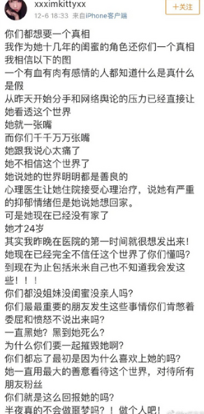 近日,關于《天使之路》選手naomi和男友分手的消息飽受爭議,關于她的各種流言不斷。12月6日,naomi閨蜜發(fā)文稱,naomi不堪輿論壓力割腕,表示naomi有嚴重的抑郁情緒,并痛斥發(fā)文黑naomi的人。zuF安康新聞網