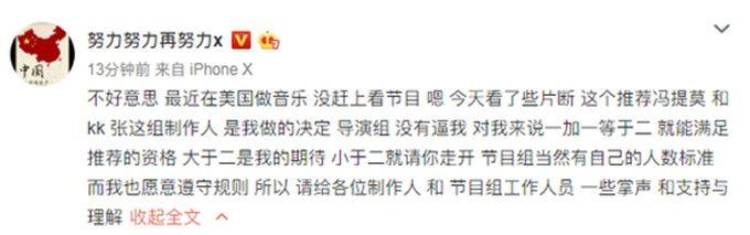 11月7日,張藝興在微博發(fā)文,疑似回應中美音樂風波。回應稱:“推薦這組制作人是我做的決定,導演組沒有逼我,對我來說一加一等于二,就能滿足推薦的資格。大于二是我的期待,小于二就請你走開!睆埶嚺d回應風波他說了什么讓網友覺得“太解氣了”?Lys安康新聞網