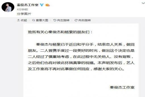 8月分手魔咒?秦俊杰楊紫分手,雙方工作室發(fā)聲明:沒有背叛