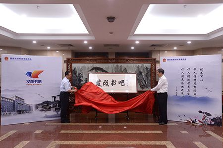 國家發(fā)改委主任何立峰、文化部部長雒樹剛共同為“發(fā)改書吧”揭牌 本報(bào)記者 高弘杰 攝