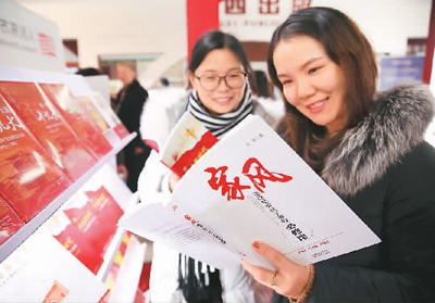 1月11日開幕的2018北京圖書訂貨會上發(fā)布了《2017年中國圖書零售市場報告》。報告稱,網(wǎng)上書店渠道依然是市場增長的主要推動力,實現(xiàn)了25.82%的增長。圖為讀者在圖書訂貨會上翻看圖書。W9F安康新聞網(wǎng)