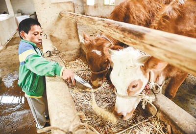 圖為近日王華銀在給牛投喂飼料。PWw安康新聞網(wǎng)