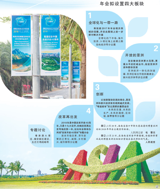 博鰲亞洲論壇2018年年會(huì)將于4月8日至11日舉行,主題為“開放創(chuàng)新的亞洲 繁榮發(fā)展的世界”。年會(huì)將聚焦改革、開放、創(chuàng)新以及全球化和“一帶一路”等議題,為亞洲的進(jìn)一步開放、聯(lián)動(dòng)、創(chuàng)新發(fā)展建言獻(xiàn)策,為世界經(jīng)濟(jì)穩(wěn)步復(fù)蘇凝心聚力