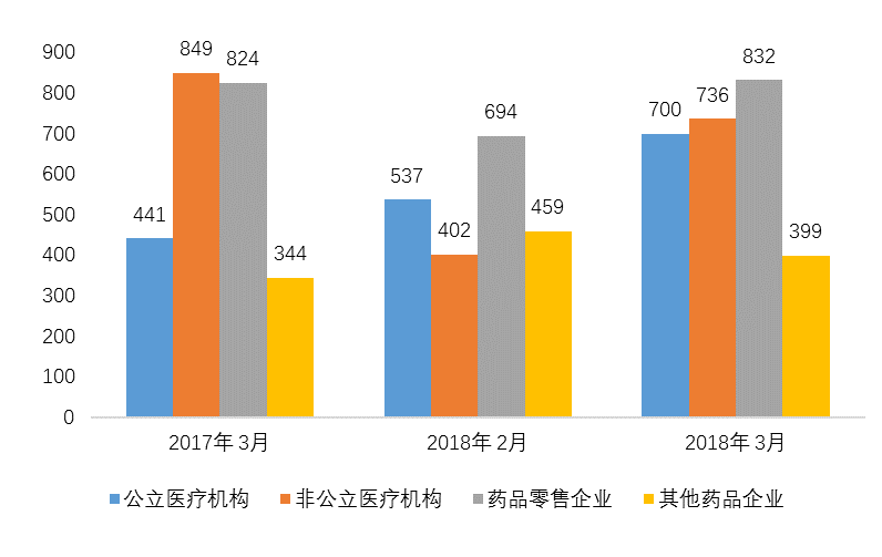 從問題分布來看,受理案件主要集中在公立醫(yī)療機構(gòu)、非公立醫(yī)療機構(gòu)、藥品零售企業(yè)。其中公立醫(yī)療機構(gòu)的案件占24.0%,同比上升58.7%,環(huán)比上升30.3%;非公立醫(yī)療機構(gòu)的案件占25.2%;同比下降13.3%,環(huán)比上升83.0%;藥品零售企業(yè)的案件占28.5%,同比上升0.9%,環(huán)比上升19.8%。
