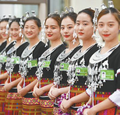 | 身著黎族服飾的博鰲亞洲論壇志愿者準備迎接嘉賓。 |