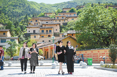 圖為游客在東安村村前文化廣場(chǎng)游覽。
