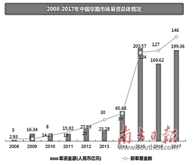 報告顯示,2017年廣東早期市場共募集42.28億元,單個基金平均募集金額為1.24億元人民幣,同比增長48.98%,位列全國第三。