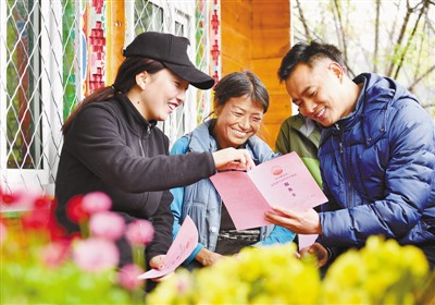 圖為5月5日,工作組成員(右)為貧困戶投保人(中)講解相關(guān)保險內(nèi)容。K4H安康新聞網(wǎng)