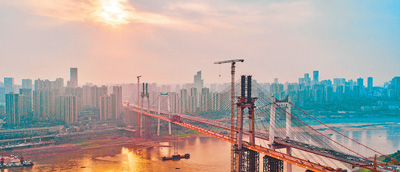 5月5日,世界最大跨度的自錨式懸索橋——重慶市鵝公巖軌道交通專用橋在長江上順利合龍。該橋全長1650米,其中主跨為600米的雙塔雙索面五跨連續(xù)鋼箱梁自錨式懸索,跨徑為同類型橋梁的世界之最。跨徑的增大,對橋梁設(shè)計能力、高強度厚鋼板材料性能及其焊接工藝、施工能力、施工裝備等方面提出了更高要求。