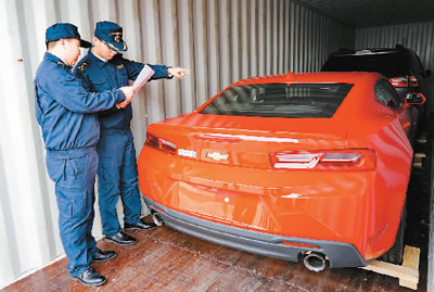 1月17日,河北省首批進(jìn)口汽車整車到達(dá)唐山港京唐港區(qū)。圖為唐山海關(guān)的工作人員在唐山港京唐港區(qū)核對進(jìn)口車輛的信息。 |