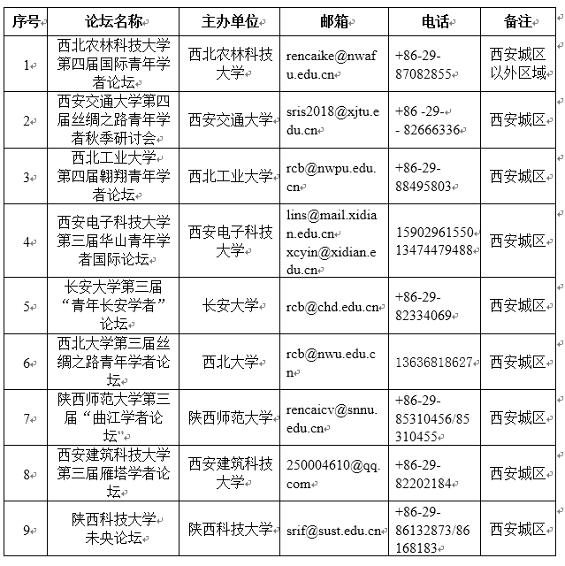 進(jìn)一步咨詢,可發(fā)郵件或致電各分論壇,聯(lián)系方式見附表。
