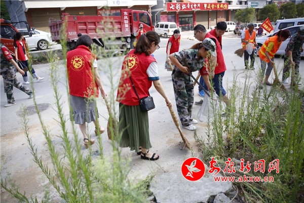 慰問活動結(jié)束后,郭局長和楊總帶領(lǐng)青年志愿者與保潔員們共同開展了清掃社區(qū)活動。