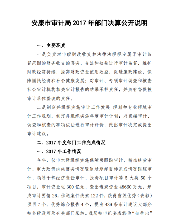 安康市審計局2017年部門決算公開說明