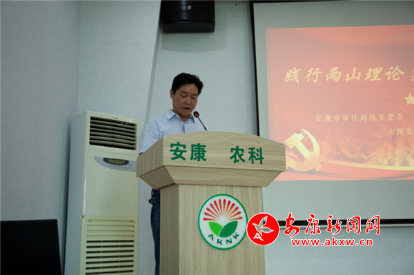 觀摩結(jié)束后,黨員干部們進行了黨建經(jīng)驗交流。市局副局長劉昕玫同志帶領(lǐng)大家重溫了入黨誓詞,大家在鮮紅的黨旗面前以鏗鏘有力的誓言堅定了自己踐行總書記生態(tài)文明思想的決心和信心。機關(guān)黨委書記、副局長郭峰同志以《學習“農(nóng)科精神”,建設生態(tài)安康》為題進行了精彩的致辭,他強調(diào),總書記來陜重要講話精神是新時代構(gòu)建審計和農(nóng)科工作新格局的行動指南,“綠水青山,就是金山銀山”新理念為新時代經(jīng)濟發(fā)展指明了方向,推動生態(tài)環(huán)境持續(xù)好轉(zhuǎn)是中華民族偉大復興的必然要求,審計人和農(nóng)科人要以這次活動為契機堅決貫徹落實總書記來陜重要講話和指示精神,以實際行動發(fā)揚“農(nóng)科精神”,為安康實現(xiàn)“六保”和“六穩(wěn)”目標、建設生態(tài)經(jīng)濟強市、打造內(nèi)陸改革開放高地貢獻力量。農(nóng)科院黨委副書記、院長張百忍同志以《不忘服務三農(nóng)初心,牢記科技創(chuàng)新使命》為題向大家講了一堂生動的黨課,介紹了農(nóng)科院的發(fā)展歷程和主要做法。