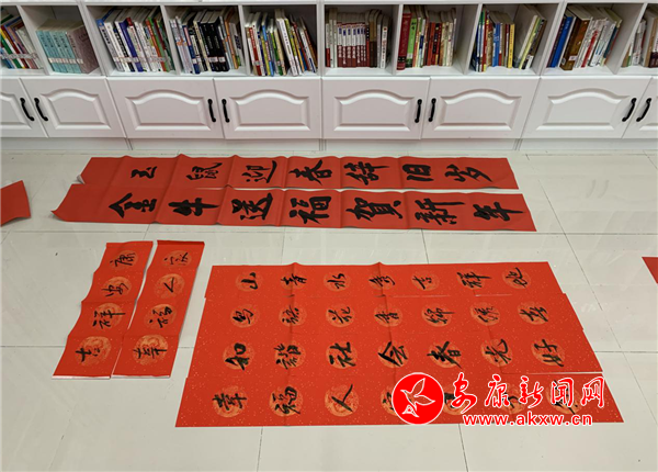 本網(wǎng)訊(通訊員 宮再朋 張艷)1月27日,在紫荊鎮(zhèn)各村文化活動(dòng)室里,來(lái)自各村的書(shū)法愛(ài)好者們揮毫潑墨,為村民們義寫(xiě)春聯(lián)。一副副飄著墨香,飽含著濃濃年味、美好祝福的春聯(lián)相繼出爐,行書(shū)、楷書(shū)、隸書(shū)等多種字體各顯神韻,不一會(huì)就鋪滿了地面。NuS安康新聞網(wǎng)