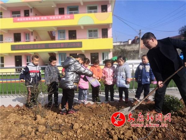 本網(wǎng)訊(通訊員 章軒 謝曉溪)陽春三月,草長鶯飛間,冬天的寒意還未褪去,春天帶著綠色的氣息走來,春風吹綠了枝頭上的嫩芽,吹綠了校園的小草,也吹動了師生愛綠護綠、裝扮校園的熱情。3月12日,漢濱區(qū)流水鎮(zhèn)學坊埡小學和學坊埡社區(qū)幼兒園舉行了植樹節(jié)系列活動。