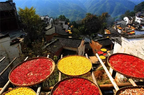 在湖南、江西、安徽等山區(qū),有“曬秋”習(xí)俗。因?yàn)槠降厣,農(nóng)民便利用自家窗臺、房頂架曬或掛曬農(nóng)作物。“曬秋”的秋不僅指秋天,更寓意著豐收和收獲的果實(shí)。