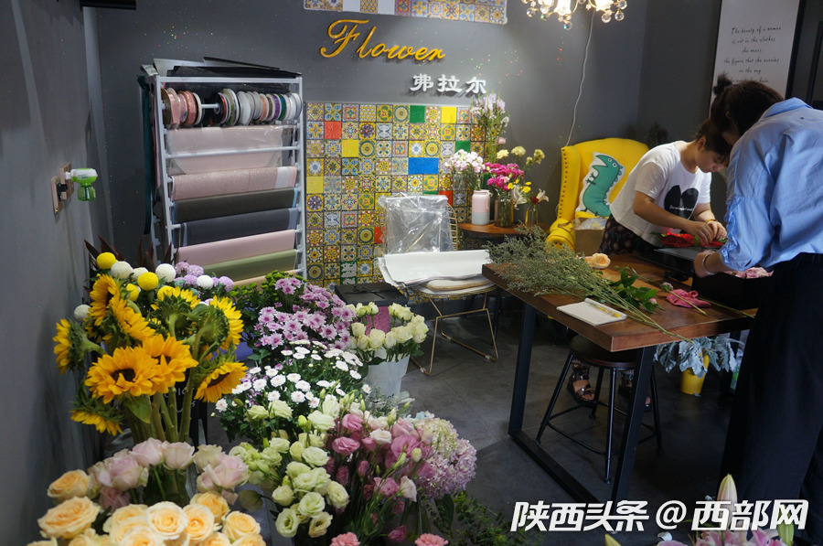 花店老板和工作人員正在為七夕做準(zhǔn)備。