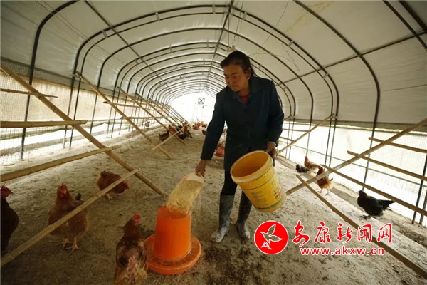 騰靜是我社的一名資深校對(duì),2017年初她帶著精準(zhǔn)扶貧的艱巨任務(wù),來(lái)到了貧困戶劉合英家。幾年前劉合英丈夫因病去逝,留下三個(gè)上學(xué)的孩子和治療欠下的外債。騰靜了解情況后,首先爭(zhēng)取到國(guó)家針對(duì)貧困戶生的助學(xué)款,然后幫助劉合英參加了國(guó)家扶貧搬遷免費(fèi)交鑰匙工程。之后,在村干部的幫助下貸了款,建了雞舍和豬圈,買了30只雞和兩頭豬仔。