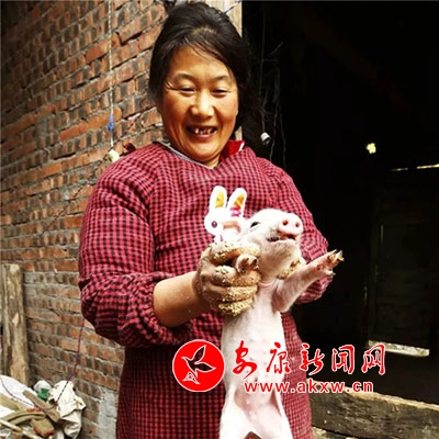 圖為貧困戶翁佰云妻子李林巧;翁佰云一家,學(xué)習(xí)養(yǎng)豬技術(shù),目前已存欄大小生豬60頭。