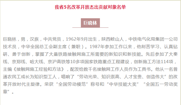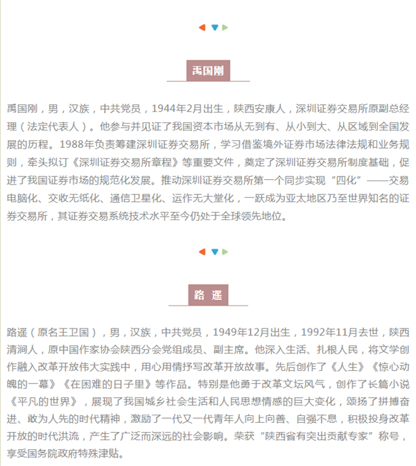 根據(jù)評(píng)選表彰工作部署,在各地區(qū)各部門(mén)反復(fù)比選、組織考察、集體研究提出推薦人選的基礎(chǔ)上,經(jīng)歸口評(píng)審、統(tǒng)籌考慮,產(chǎn)生了100名改革開(kāi)放杰出貢獻(xiàn)擬表彰對(duì)象。其中我省5人入選,安康1人上榜。ewW安康新聞網(wǎng)