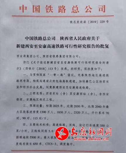 本網(wǎng)訊 (通訊員 安政軒)4月26日,新建西安至安康高速鐵路可行性研究報告獲得中國鐵路總公司、陜西省人民政府正式批復(fù),標(biāo)志著西康高鐵即將啟動實質(zhì)性建設(shè)。