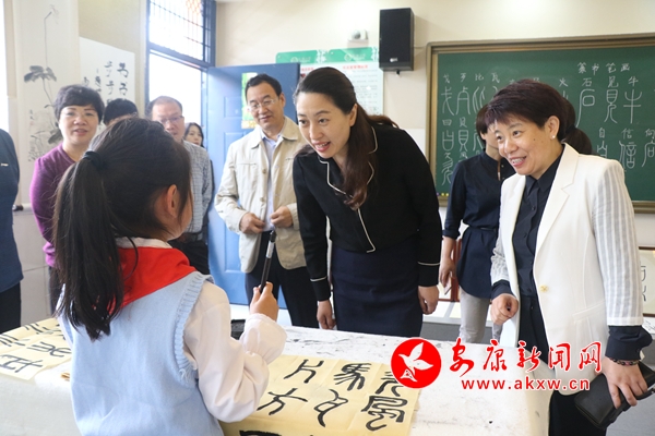 在漢濱區(qū)第一小學,楊淼參觀了校園書法室、美術室、勞技室和音樂活動室,在孩子們制作的書法、版畫、折紙等作品前駐足觀看,與孩子們熱情互動交流,勉勵他們要加強體育鍛煉、強健體魄,常懷愛心、懂得感恩,努力學習、快樂成長。在市兒童福利院,楊淼關切詢問孩子們的身體狀況、教育和醫(yī)療保障情況,看到殘疾兒童在老師們的照料下快樂學習、健康成長,她向廣大教職員工表示感謝,并叮囑大家以更加飽滿的熱情把孩子們呵護好、教育好、培養(yǎng)好,為將來融入社會打下良好基礎。