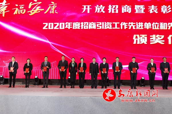 會上通報了全市經(jīng)濟社會發(fā)展情況,總結(jié)了全市招商引資工作、推介了重點投資領(lǐng)域,聘任了禹國剛等6人為開放發(fā)展高級顧問,表彰了2020年度招商引資工作先進單位、先進個人和返鄉(xiāng)創(chuàng)業(yè)優(yōu)秀企業(yè)家,兌現(xiàn)了第二輪毛絨玩具文創(chuàng)產(chǎn)業(yè)發(fā)展基金。據(jù)悉,大會采取線上線下聯(lián)動、域內(nèi)域外協(xié)同的方式進行,現(xiàn)場共簽約合同項目11個,總投資77.7億元。佛山市陜西商會、中山市陜西商會、上海安康商會、廣東省安康商會、西安安康商會、北京安康商會籌委會、杭州安康商會籌委會、中鐵建發(fā)展集團、上港物流、深圳市中小企業(yè)聯(lián)誼會等各地商協(xié)會和企業(yè)客商及新聞媒體代表5000余人通過網(wǎng)絡(luò)平臺在線參加或收看大會。