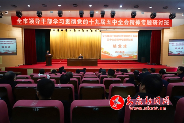 本網(wǎng)訊(記者 吳單)2月25日,全市領(lǐng)導(dǎo)干部學(xué)習(xí)貫徹黨的十九屆五中全會(huì)精神專題研討班在市委黨校結(jié)業(yè),市委副書記王剛作總結(jié)講話。全體學(xué)員參加結(jié)業(yè)式并集中收看了全國(guó)脫貧攻堅(jiān)總結(jié)表彰大會(huì)直播,5名學(xué)員代表作交流發(fā)言。