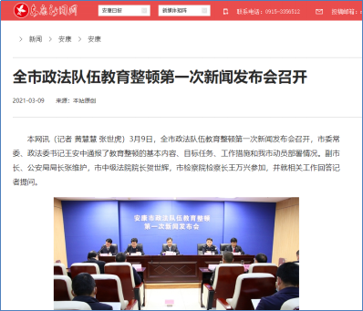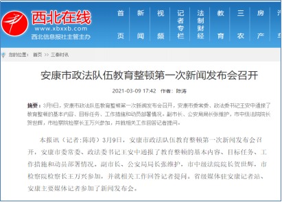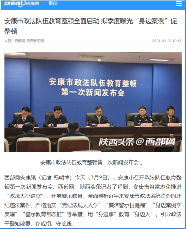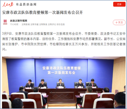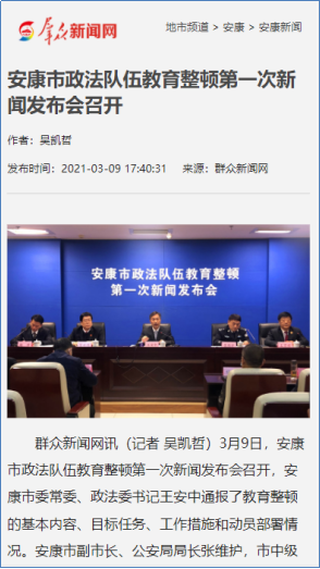 央廣網(wǎng)、群眾新聞網(wǎng)、西部網(wǎng)等媒體,紛紛通過多平臺、立體化的傳播途徑和手段,宣傳安康政法隊(duì)伍教育整頓工作。VyW安康新聞網(wǎng)