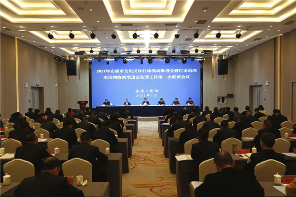 春風(fēng)吹奮進(jìn),反詐正當(dāng)時(shí),3月9日,中共安康市委、安康市人民政府在紫陽(yáng)縣召開2021年安康市全民反詐行動(dòng)現(xiàn)場(chǎng)推進(jìn)會(huì)暨打擊治理電信網(wǎng)絡(luò)新型違法犯罪工作第一次聯(lián)席會(huì)議,認(rèn)真學(xué)習(xí)貫徹習(xí)近平總書記關(guān)于打擊治理電信網(wǎng)絡(luò)新型違法犯罪工作重要指示精神,全面落實(shí)中省部署新要求,推動(dòng)構(gòu)建“黨政主導(dǎo)、部門主責(zé)、公安主打、群眾主體”四位一體全社會(huì)反詐新格局,以“兩降四無(wú)”(發(fā)案數(shù)下降、群眾損失下降,無(wú)電信網(wǎng)絡(luò)詐騙案件、無(wú)詐騙犯罪嫌疑人、無(wú)“兩卡”涉案人員、無(wú)詐騙窩點(diǎn))為創(chuàng)建標(biāo)準(zhǔn),在全省率先從全市層面全面鋪開“無(wú)詐村(社區(qū))、單位、鎮(zhèn)(辦)”創(chuàng)建活動(dòng)暨全民反詐行動(dòng),把打贏反詐人民戰(zhàn)爭(zhēng)作為政法隊(duì)伍教育整頓為群眾辦好的一件實(shí)事,進(jìn)一步助力市域社會(huì)治理現(xiàn)代化和更高水平平安安康建設(shè),推動(dòng)安康政法工作高質(zhì)量發(fā)展。