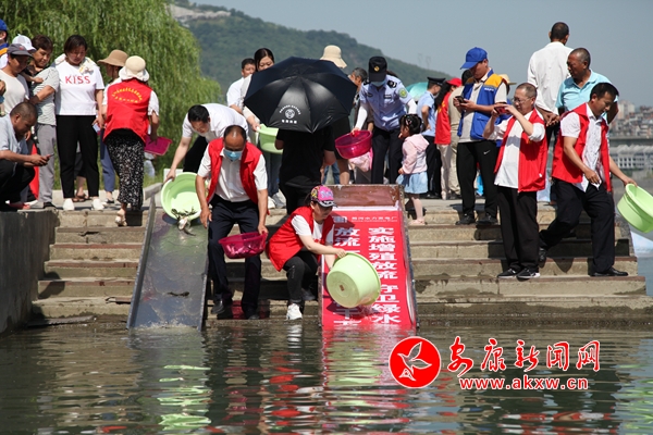 本網(wǎng)訊(記者 唐波)6月6日是農(nóng)業(yè)農(nóng)村部確定的“全國放魚日”,當日上午,省農(nóng)業(yè)農(nóng)村廳在旬陽縣海事碼頭舉行2021年“全國放魚日”陜西省魚類增殖放流活動啟動儀式。省農(nóng)業(yè)農(nóng)村廳二級巡視員鄭蕓瑄宣布活動啟動,市政協(xié)副主席、旬陽縣委書記梁濤致辭。