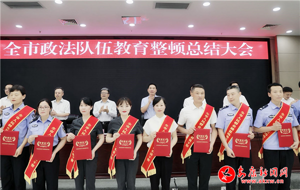會上,市政法隊(duì)伍教育整頓領(lǐng)導(dǎo)小組授予50名同志“全市人民群眾滿意的政法干警”稱號。