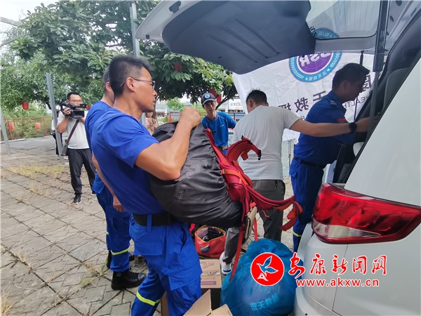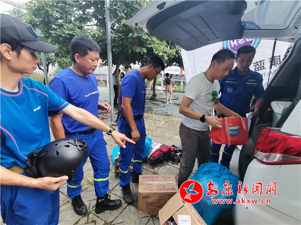 浮力馬甲、頭盔、拋繩包、50米繩、30米繩、急救包、固定板、太陽(yáng)燈……準(zhǔn)備現(xiàn)場(chǎng),隊(duì)員們逐一認(rèn)真核對(duì)所攜帶的救援裝備,不時(shí)有志愿者送來(lái)捐贈(zèng)的生活用品。